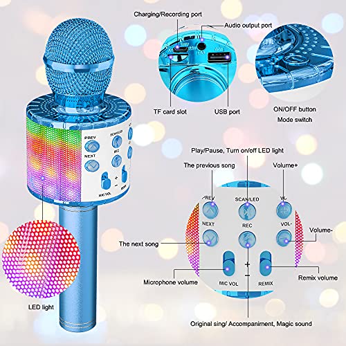 IDEAL KERST KARAOKE CADEAU: Deze blauwe voice changer leuke microfoon toont gloeiende dansende led lichten samen met uw stem en muziek volume, laat u zich voelen in het midden van de disco club. Niet alleen kinderen, maar ook volwassenen zullen het geweldig vinden en genieten van veel plezier! Als een probleem, gelieve ons onmiddellijk, en we sorteren het voor u.