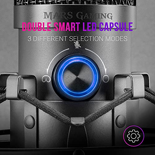 Mars Gaming MMICX, Professionele Studio Microfoon LED, Mute, USB+Jack 3.5mm, Zwart