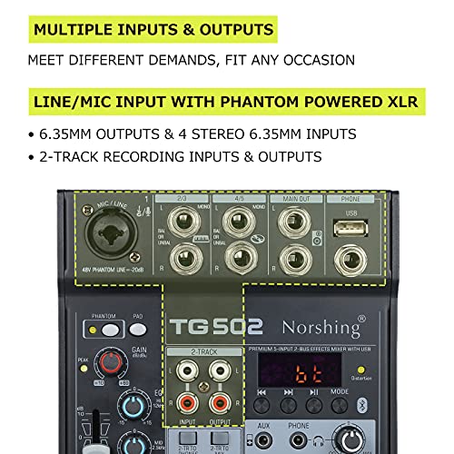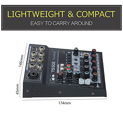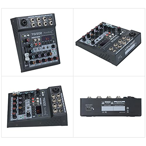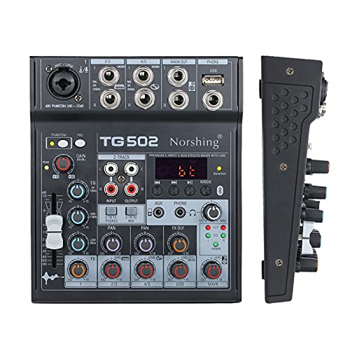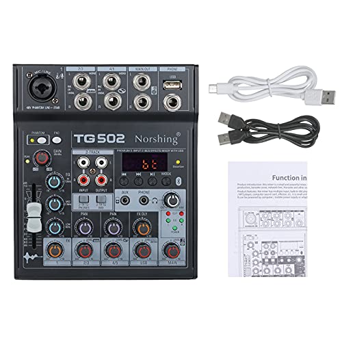 Norshing TG 502 USB-audiomixer, professionele audioixer 4-kanaals stereo soundboard consolesysteem USB BT MP3…