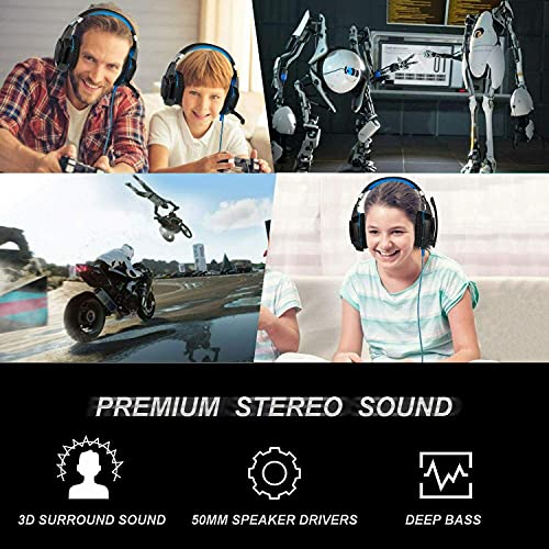 ROSEBEAR Koptelefoon over het oor, koptelefoon met microfoon, computerheadset voor pc, laptop, Xbox (blauw)