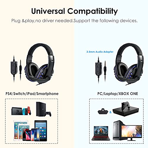 ▶ 【GESCHIKT】 Met 3,5 mm stekker, De gaming-hoofdtelefoon is compatibel met PS4 / PS4 pro / PS4 slim, Xbox one / Xbox one S / Xbox one X, pc, laptop, tablet, iPad en iOS, Android-apparaat met mm krik.
