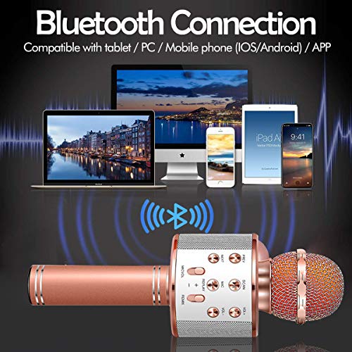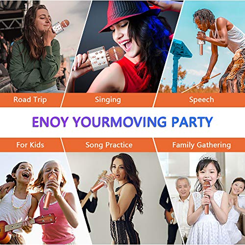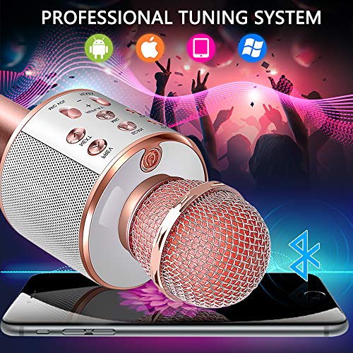 ???? Multifunctionele microfoon – Draagbare handheld draadloze karaokemicrofoon kan worden gebruikt als microfoon, Bluetooth-luidspreker, luidspreker, recorder. Gebruik deze karaoke-machine om thuis te zingen of je geweldige stem op elk moment / waar op te nemen.