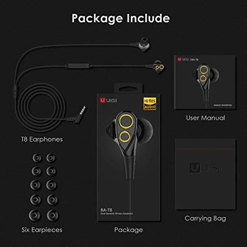 Specification: Uiisii T8 in-ear hoofdtelefoon in-ear oordopjes met Dual Dynamic driver microfoon, volumeregelaar, super diepe bas en…